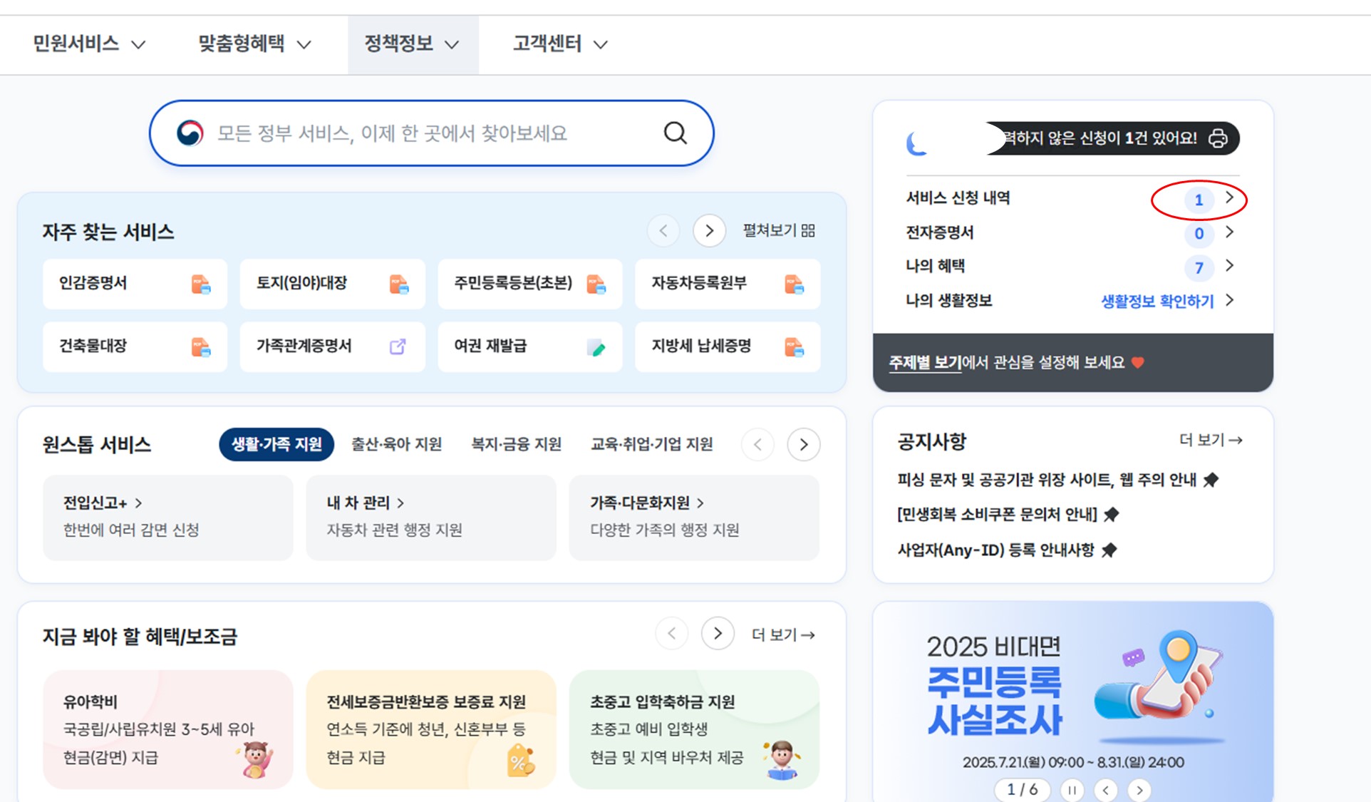 신청을 다하셨다면 아래 화면처럼 페이지가 이동됩니다