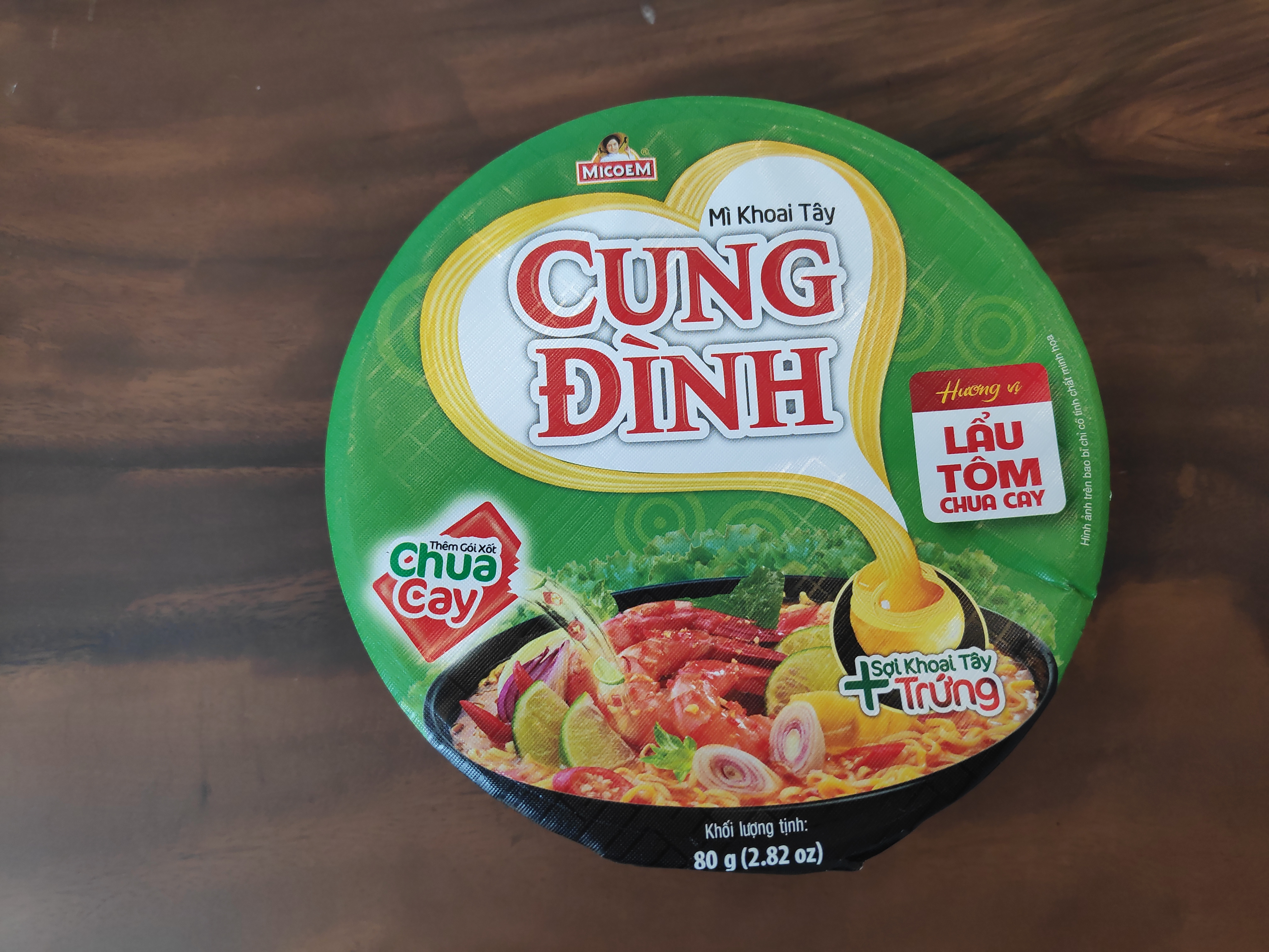 맛은 흠 똠양꿍? 까지는 아닌데 약간 새콤하고 Cay Chua (맵고 신맛)인데 맵지는 않았어요. 면발은 감자면이라고 되있었는데 그 특징을 느낄 수 없었고 그냥 팔도에서 생산되는 라면들의 면발 식감이랑 비슷했어요