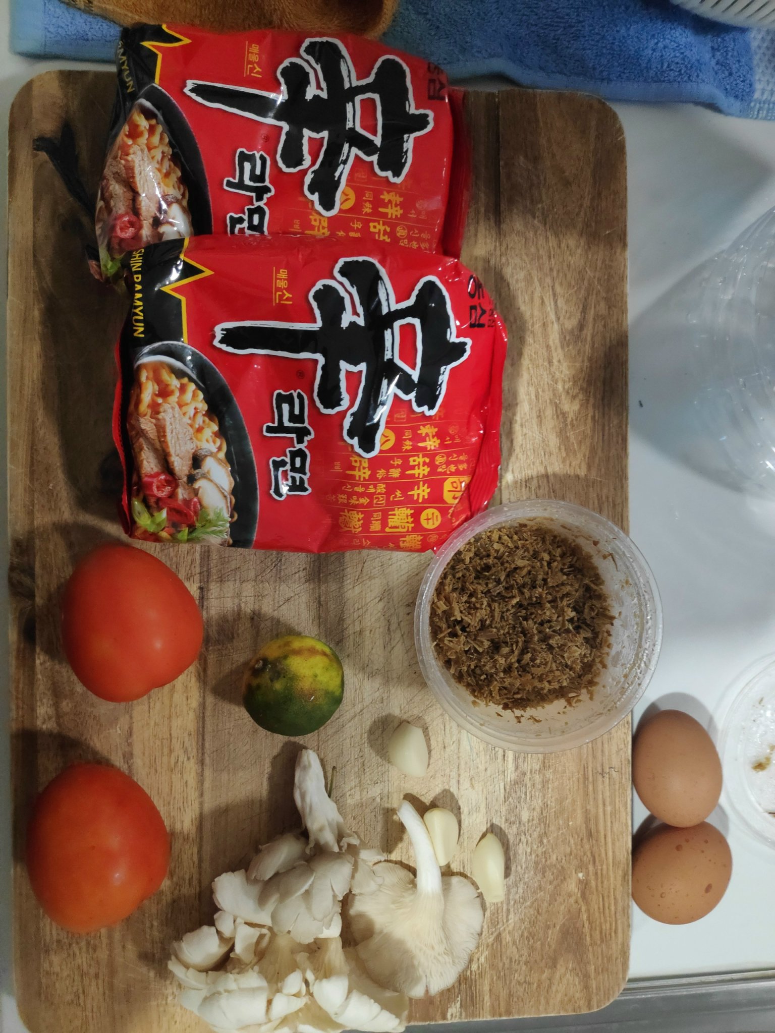 먼저 재료는 2 인기준 라면 2봉지 (신라면 추천), 레몬그라스, 토마토, 라임, 다진마늘, 베트남고추, 파, 버섯 입니다