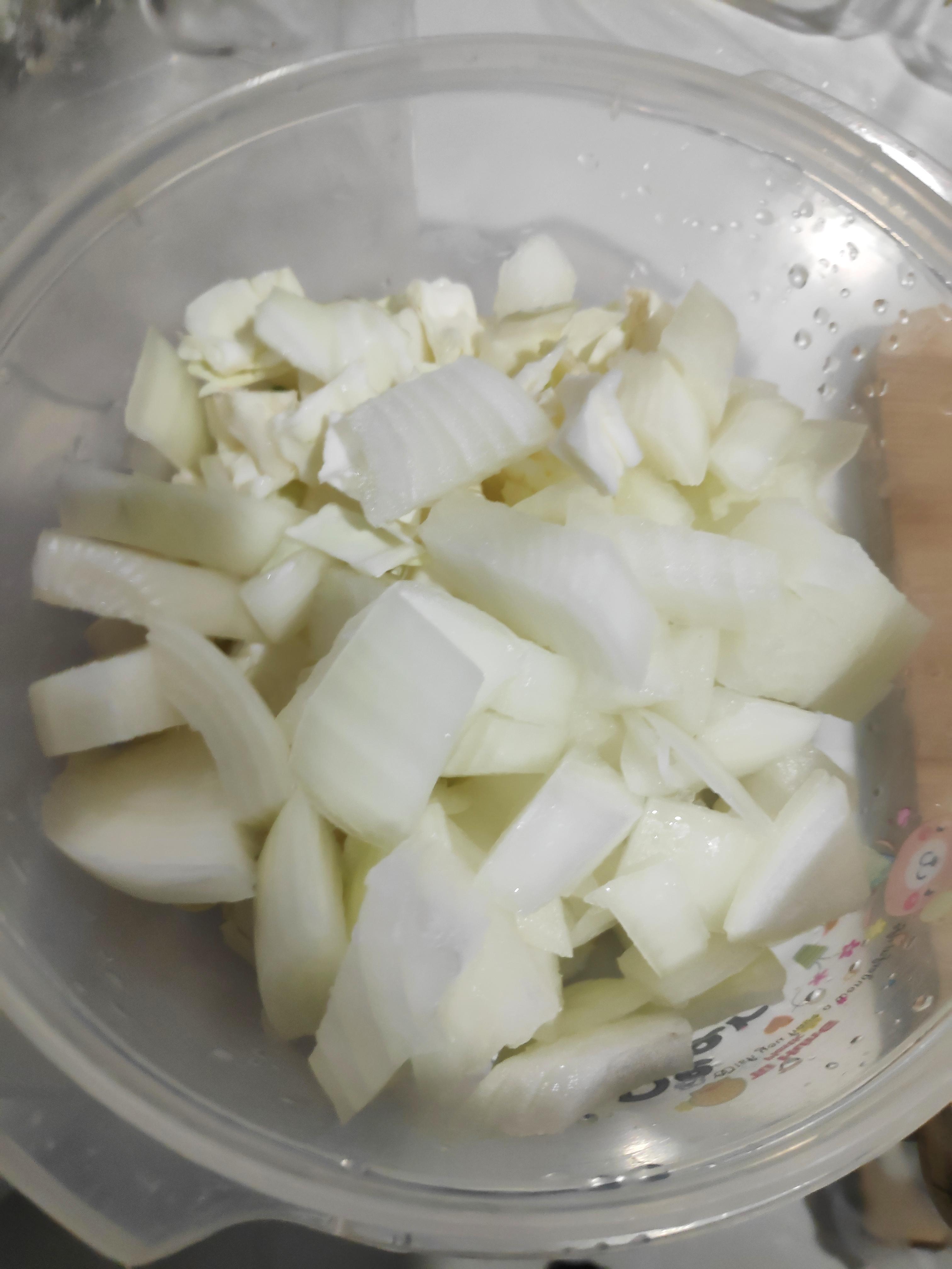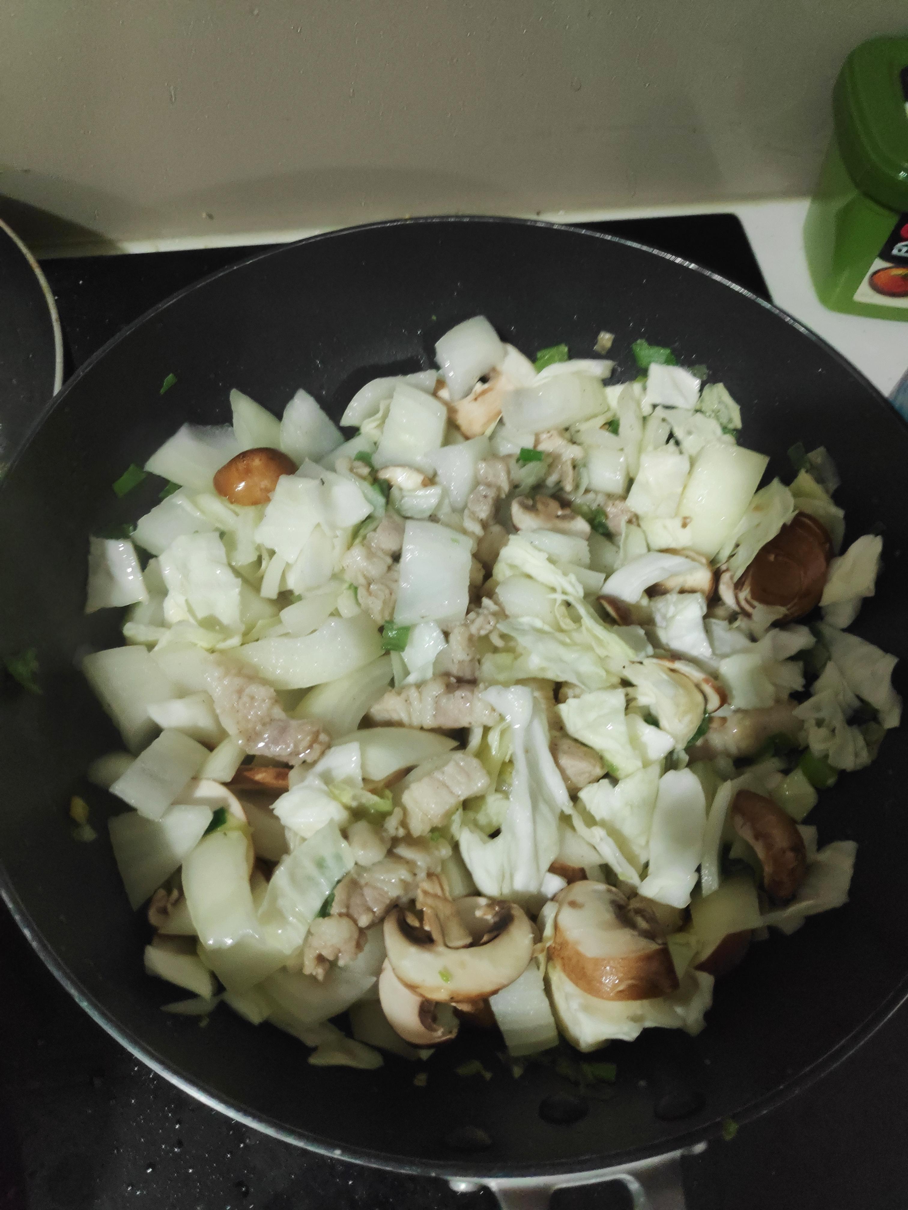 양파랑 양배추, 버섯을 먹기 좋은 크기로 썰어놓고