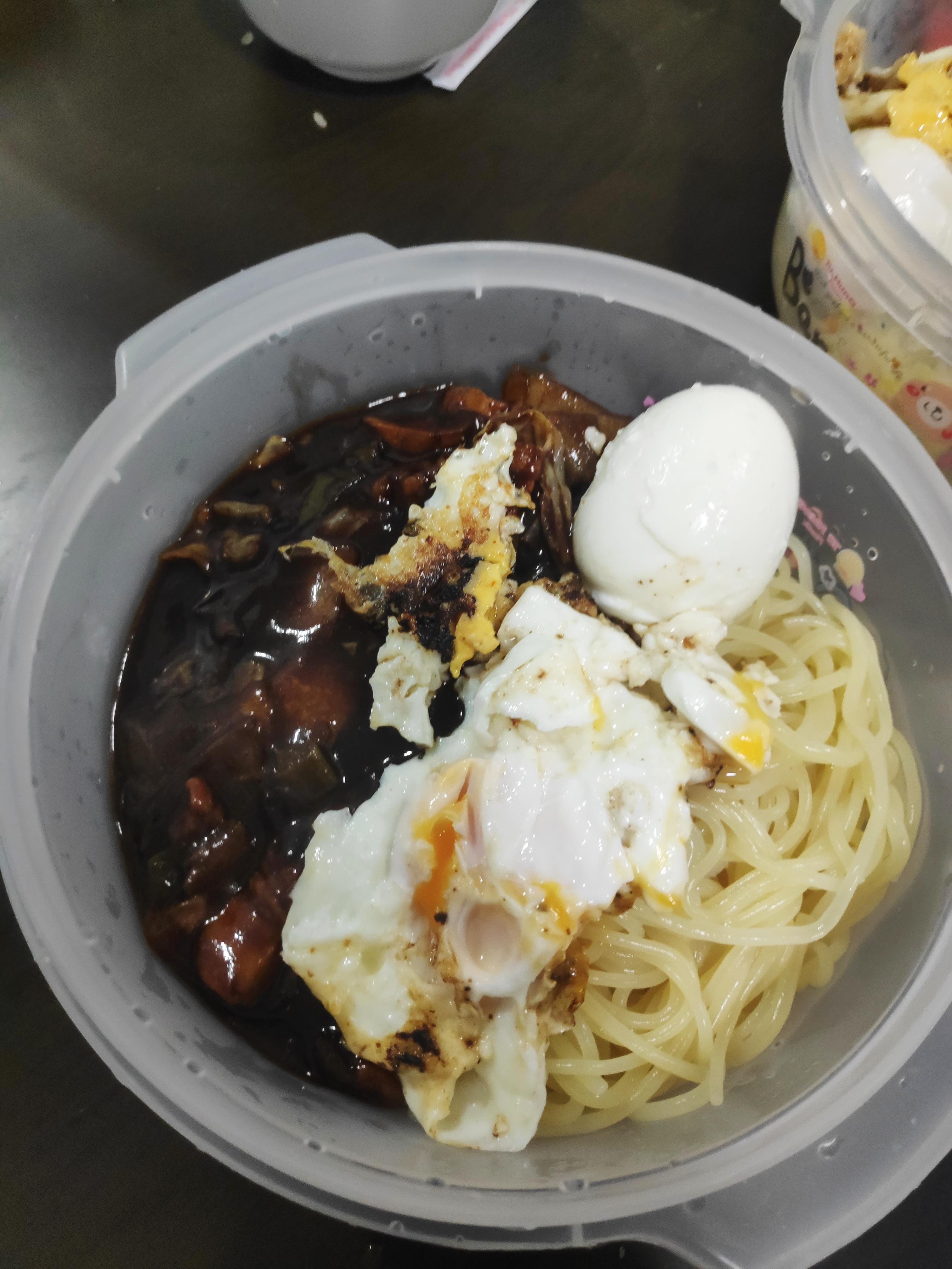 맛은 약간 짜파게티와 사먹는 짜장면의 중간 맛? 맛있었다