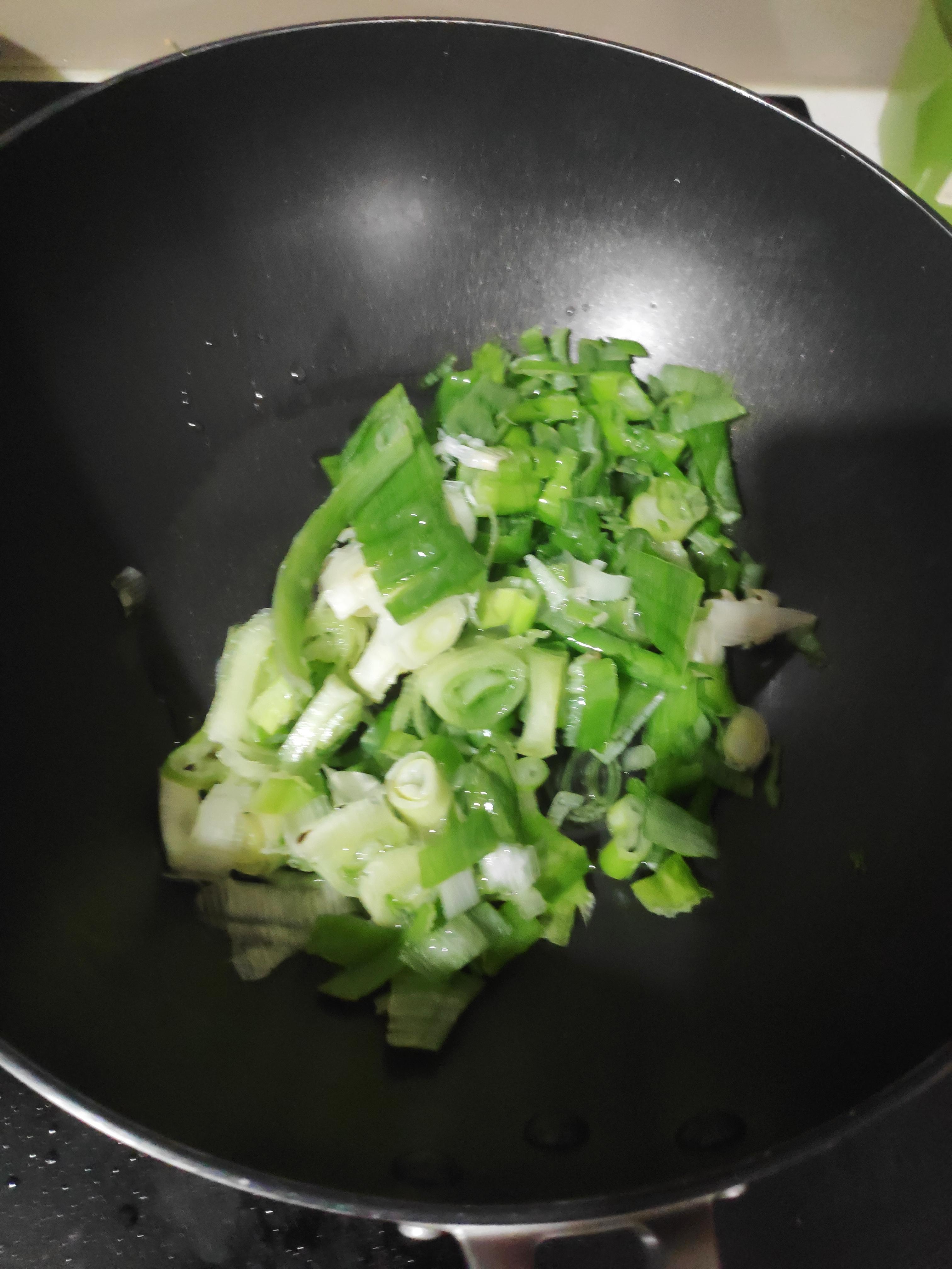 볶음팬에 대파 넣고 파기름 내주다가 삽겹살도 같이 넣고 기름을 쭉 뽑아낸다 이 때 후추랑 소금넣고 밑간을 좀 해주고