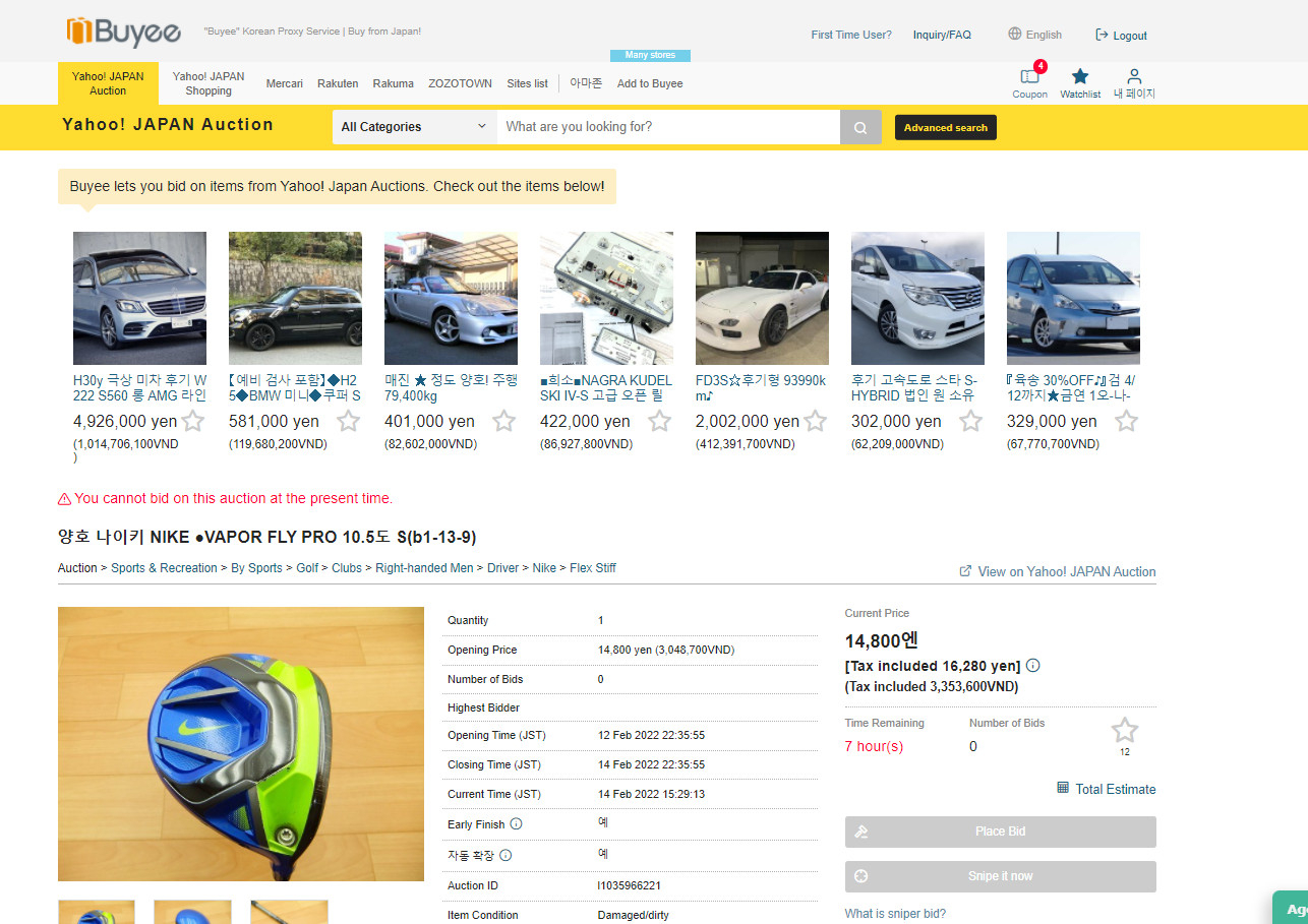 아무래도 해외생활하면서 한국이 아닌 다른 나라의 물건을 사려고하면 언어는 물론이고 결제수단, 주문, 배송지 때문에 직구가 쉽지 않은데 Buyee를 통하면 결제는 베트남 신한은행에서 발급받은 VISA 카드 등록해서 쓰거나 Paypal 쓰면되고 물건을 받아봐야 알겠지만 배송비도 EMS랑 크게 다른 것 같지 않으니 베트남이나 한국에서 사는 것보다 싸게 구할 수 있는 물건이 있으면 종종 이용해봐야겠다.