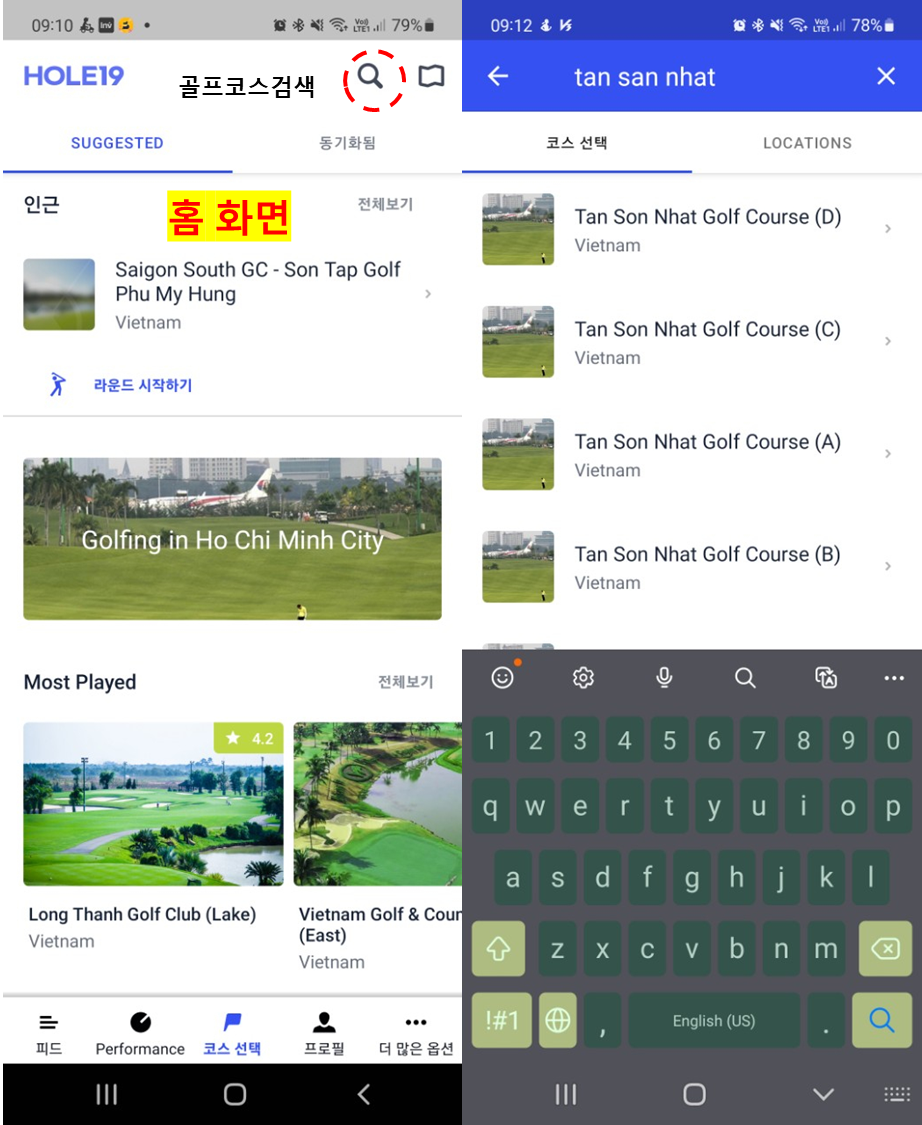 hole19 (구글플레이 스토어, 스마트폰, 워치 둘다 다운받아야됨)