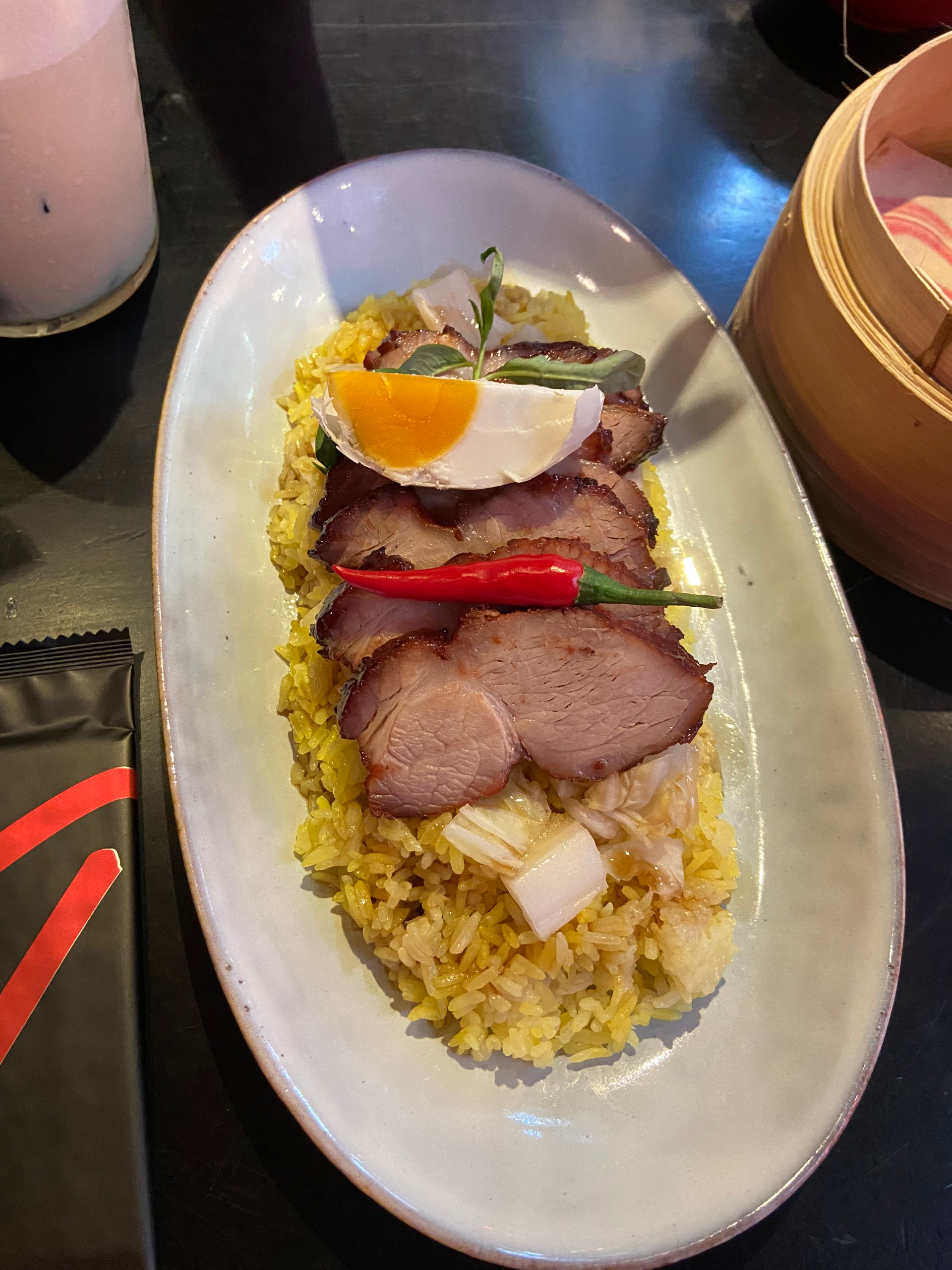조린돼지고기, 달걀노른자 반숙에 베트남식 갓김치인 cai chua (베트남식인지 중국식인지 대만식인지 확실치 않음)를 잘게 썰어서 같이 비벼먹는 음식인데, 딱 장조림 계란 비빔밥의 상위호환 버전의 맛이다.