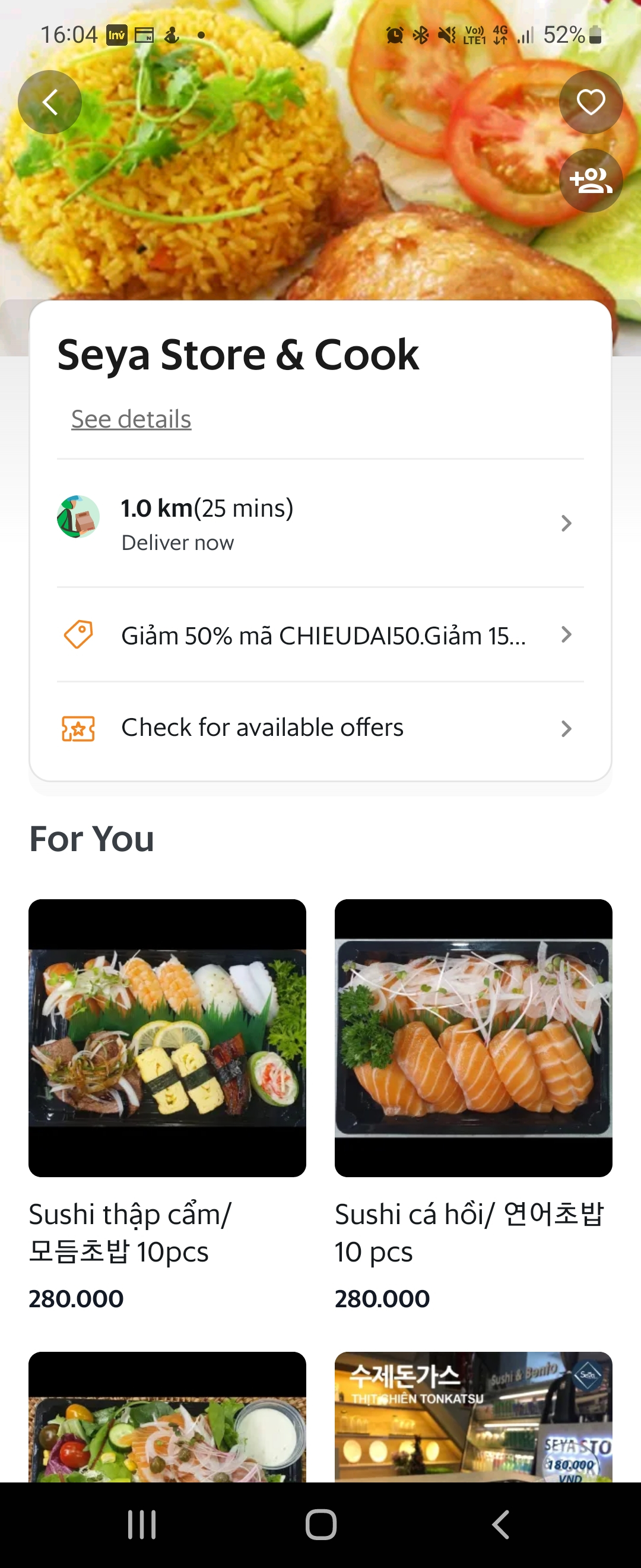 그랩, 배민, 배달k 등에서 찾을 수 있는 Seya store