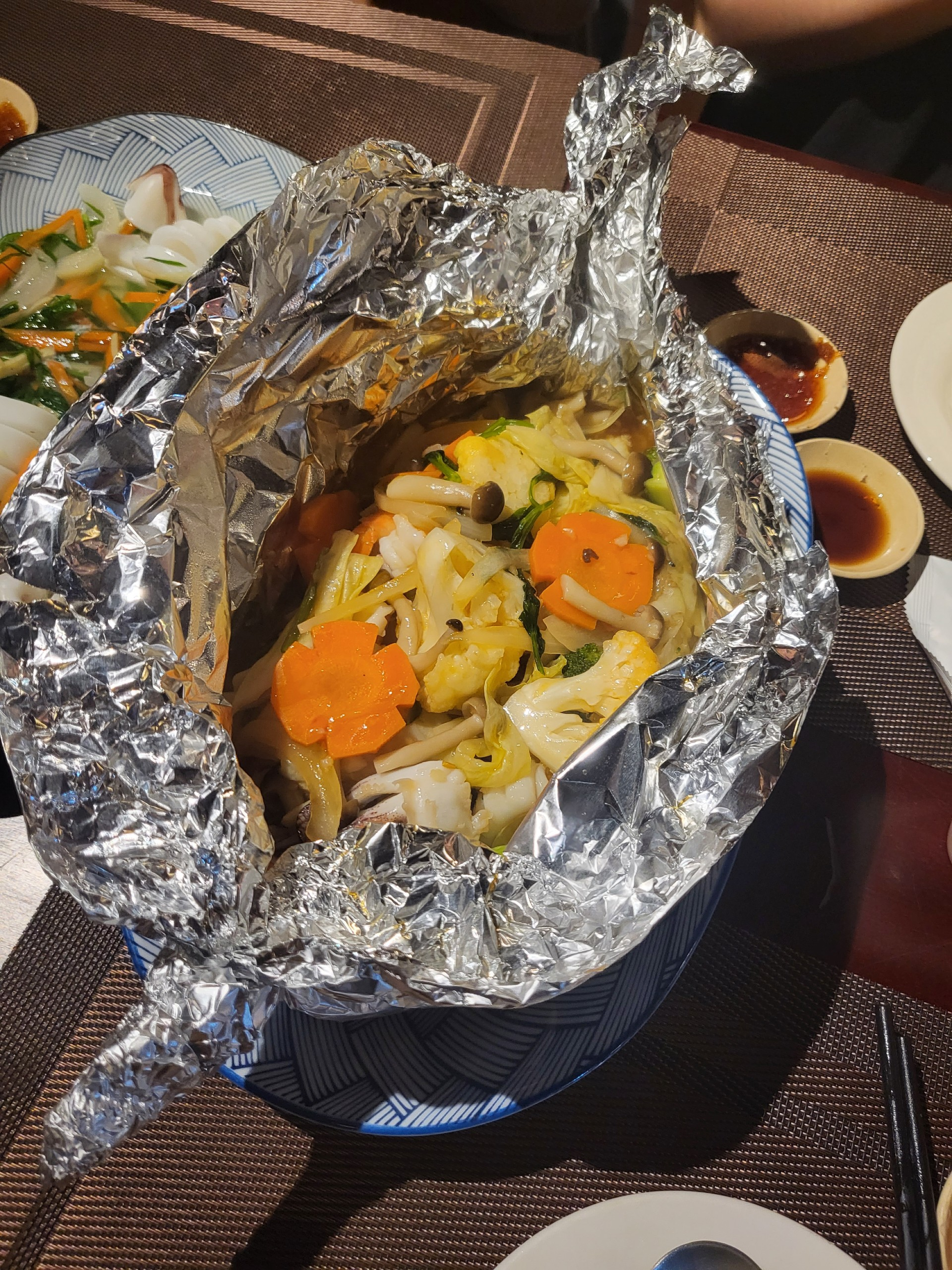 버섯, 각종채소와 해산물 같이 쪄낸듯한 요리 이것도 맛있음, 인생에서 브로컬리 제일 맛있게 먹음