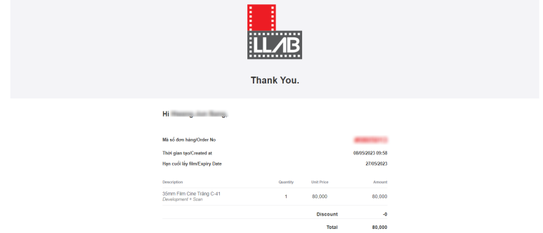 다 쓴 필름과 1)본인 이름, 2) 이메일, 3) 전화번호를 종이에 적어 본인 위치에서 가까운 지점으로 그랩으로 보내거나 우편으로 보내면 기재한 이메일로 주문접수 메일이 온다.